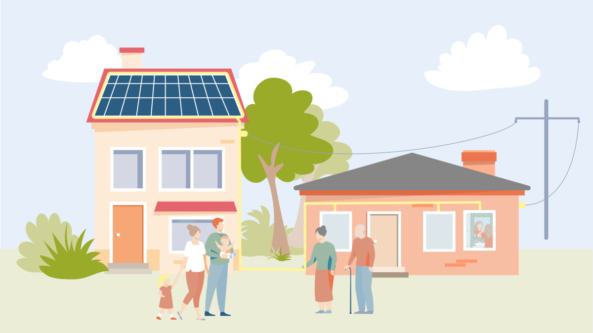 Einfach gesagt, kann im Rahmen der gemeinsamen Energienutzung erneuerbarer Strom erzeugt und mit mehreren Teilnehmer:innen wie zum Beispiel Haushalten, Betrieben oder Gemeinden geteilt werden. Energie kann innerhalb eines Standorts oder über Grundstücksgrenzen hinweg gemeinsam genutzt werden.